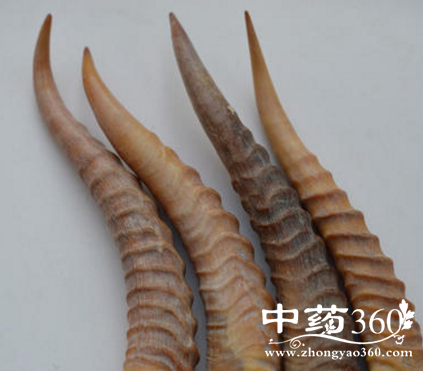 山羊角,即为牛羊科动物的角,分布于东北、华北入陕西、甘肃、浙江、福建、湖北、广东、广西、四川、云南、西藏、内蒙古、宁夏、青海、新疆、西北、华北入西藏等地。主治清热、镇惊、散瘀止痛。山羊角是寒性的药物,因此具有平肝熄风,清肝明目,清热解毒、泻肝火等的治疗作用,用于肝阳上亢,头晕目眩及抽搐,目赤头痛等症状。最好是打成粉 冲着吃。