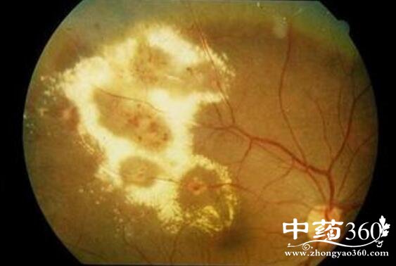 早期视物变形、视力减退,后期严重视力障碍;眼底表现:萎缩型:反光不清,散在黄色点状玻璃膜疣(druscn),黄斑区色素紊乱,似椒盐状或金箔样外观;渗出型:除萎缩型表现外,尚可见渗出、出血,形成黄白色、灰黑或灰蓝色盘状隆起,后期病源呈白色机化瘢痕及色素团或残留部分出血。