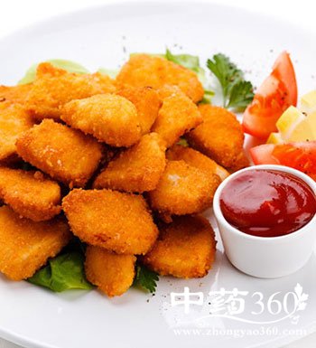 最受到上班族追捧的要数油炸类食物,“油炸食品”的危害胜于香烟和毒品,它是含有苯并芘、亚硝胺和丙烯酰胺三大致癌物的垃圾食品。例如炸鸡排、炸鱿鱼圈、炸鸡柳等。这些油炸类食物热量很高,一顿鸡腿套餐就占了总能量的一半左右。
