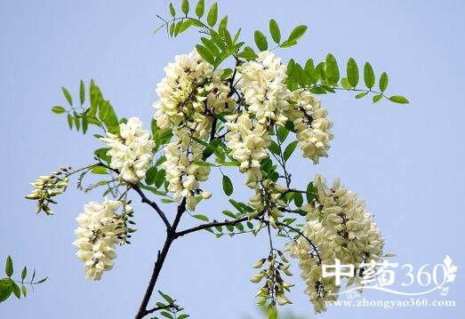 6、槐花:新鲜槐花可以做凉菜、包饺子,具有凉血、止血消痔的功效,亦可代茶饮。