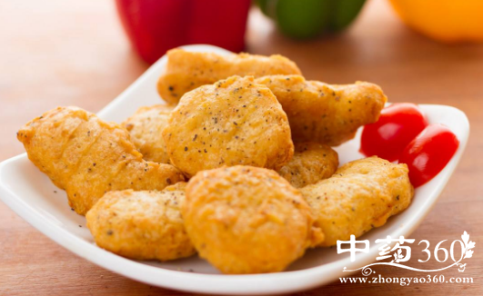 当将食物浸到面糊中然后进行深炸,就是把食物变成了一种对于消化道来说有点硬的是食物。油炸的食物难免是油腻并且高脂肪的,两者都对腹部有害。假如肠道有炎症的话,油腻的食物就会引起恶心或者腹泻的症状。如果想吃鸡块吃得健康,可以自己用面包糠或者采取焙烤的方法。这种方法同样适用于一些传统的油腻食物,如薯条。
