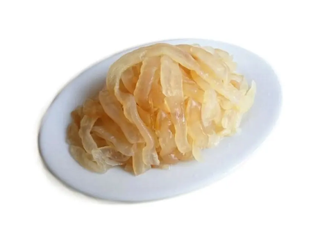 蜇皮忌用开水烫 有人把切好的蜇皮丝放在碗里用开水烫,谁知,蜇皮丝全部都萎缩了。后来才知道蜇皮应用清水浸泡,有血筋的要扯去血筋,然后洗净切成丝或片,加少许食盐后浸在凉水中用手搓去涩腥味,再清洗几遍以去掉咸味。最后,放入凉开水中浸漂1个小时,捞出滤干待用。切记蜇皮忌用开水烫,更不能煮、炖,因为蜇皮经高温后会化成浓汁,也影响了味道的鲜美和营养价值。
