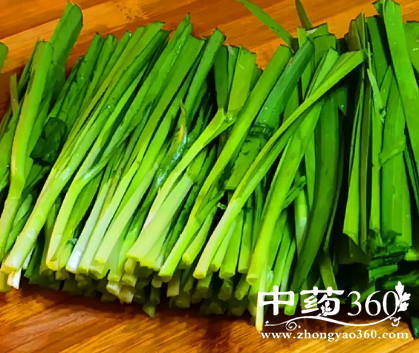 韭菜性温、味辛,具有补益温阳、益肝健胃的作用。春季气温冷暖无常,需要保护阳气,应多吃一些韭菜、葱、姜等温性食品。春季养生重在养肝,吃些韭菜有助疏调肝气,增进食欲,增强消化功能。韭菜所含的挥发油及硫化物具有帮助降低血脂、防止动脉硬化的作用。此外,韭菜富含维生素和粗纤维,素有“洗肠草”之称,故有润肠通便、治疗便秘的功效,也能有效预防肠癌的发生。