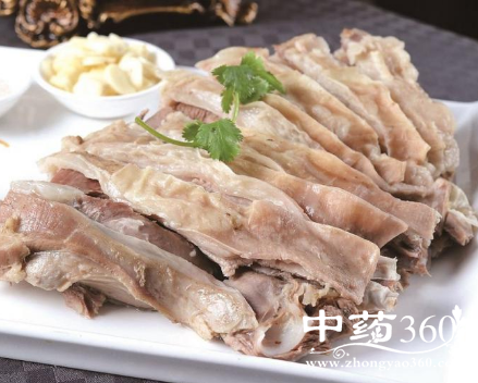 2.切块、煮制:取宁夏特产羯羊宰杀后,去内脏、头、尾、四肢再切成1千克左右的大块,投入开水锅中加花椒、小茴香、八角、桂皮和杏仁、陈皮等调料,盖锅炖煮,待炖至提羊骨一抖,骨肉分离时即可取出。