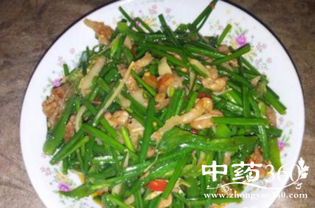 主料:野韭菜 350克 猪肉(肥瘦) 100克
