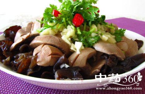 5.黑木耳用冷水泡发,黑木耳去蒂洗净后切成丝