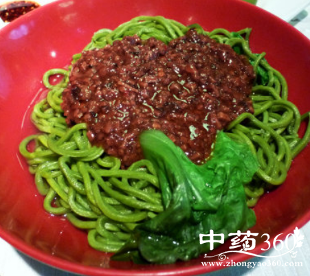 12.水开后,将压好的菠菜面放入锅中,水再开后,即可关火,焖半分钟即可出锅,在面条上放炸好的酱,还可以放入蔬菜、鸡蛋或其他菜码