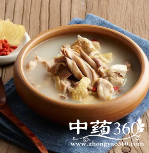 5、把猪肚、炒好的白胡椒粒、白果一起放入瓦煲锅,煲锅里倒入热水,加上盖子,大火烧开后,改成中小锅煲1.5小时。