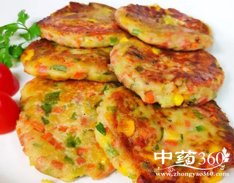 4、取一个玻璃盘,倒入适量植物油和黄油,放入土豆饼,微波高火3分钟,翻面,再用微波高火3分钟,土豆饼两面呈金黄色既成。