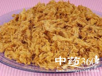 1.选料处理:以猪的后腿肌肉为原料。经修割去净膘、皮、筋、腱、骨等,然后将瘦肉顺其纤维纹路切成肉条后再横切成3厘米的短条。2.煮制:将切好的原料肉,在清水中煮制,同时加入姜和香料。待水沸时将表面油沫杂质撇净。煮制2小时左右,待发酥时,捞出晾于钢盘上。除去骨骼、软骨等,再倒入另一锅中,加入适量的清水和原汁汤,投入酱油、调味料,加热,并将浸出的漂油清除。待净肉汤减少时,加入酒、糖、味精,再翻动数次,约以3小时,肌肉纤维软松。3.炒压:用中等火头,一边用锅铲压散肉块,一边翻了一番炒。注意不要炒得过早或过迟。因炒得过早,肉块未烂,不易压散,工效很低,炒压过迟,肉块太烂,容易焦糊,造成损失。4.炒干:火头要小,连续勤炒勤翻,操作轻而均匀,在肉块全部松散和水分完全炒干时,颜色就由灰棕转变成灰黄色,最后就成为具有特别香味的金黄色肉松。