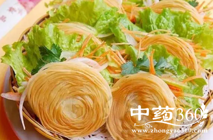 7.加少量芝麻油和盐,把四边向里折起,包紧。平底锅热锅热植物油转小火,放入煎饼,加盖,煎至两面金黄即可