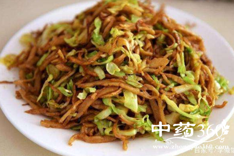 1.烙饼切粗丝,白菜切细丝,葱切成葱丝
