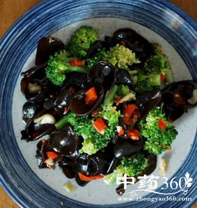 1木耳提前泡发,去除根部撕成小朵清洗干净;西兰花掰成小块清洗干净。