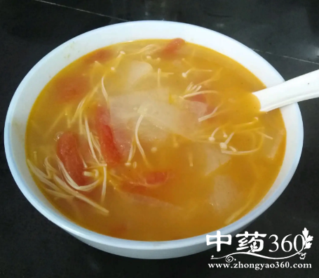金针培根冬瓜汤~小厨这次不用油腻腻的排骨 改用培根来搭配金针花与枸杞的清甜来煮冬瓜汤 少了油多了养生的食材 一样很好喝喔!材料金针1把冬瓜1块培根2片枸杞10颗盐适量胡椒粉少许香菜少许做法