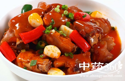猪蹄,香菇,胡萝卜,土豆,八角,葱,姜,蒜,香叶,桂皮,盐,冰糖,醋,料酒,生抽,老抽做法制作方法