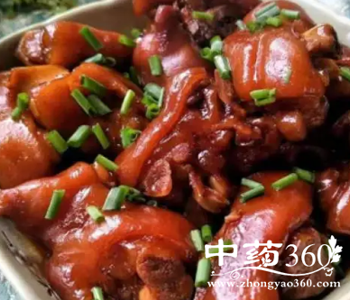 1猪前蹄泡在温盐水中10分钟,倒掉换新的温盐水,重复3次,共泡30分钟。电锅底部放蒸架,将猪前蹄与醃料放入不锈钢调理盒中,外锅水位加至不会渗入调理盒的高度。