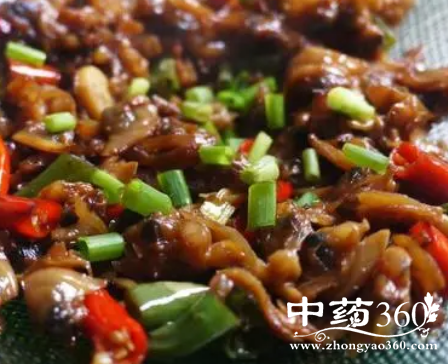 2、炒锅烧热,倒油,下姜葱蒜末下锅爆香,倒入沥干水的蛤子肉,旺火快炒,炒的时候会出一部分水,保持旺火快炒至干水。