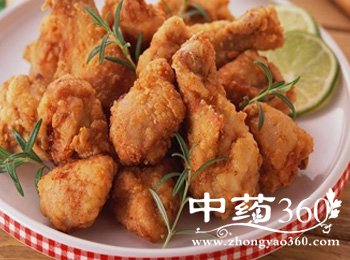 鸡腿:鸡腿肉忌与野鸡、甲鱼、芥末、鲤鱼、鲫鱼、兔肉、李子、虾子、芝麻、菊花以及葱蒜等一同食用;与芝麻、菊花同食易中毒;与李子、兔肉同食,会导致腹泻;与芥末同食会上火。香菜:服用补药和中药白术、丹皮时,不宜服用香菜,以免降低补药的疗效;同时吃猪肉不可加香菜,否则助热生痰。番茄:西红柿忌与石榴、螃蟹、冰棒、红薯、白酒、猪肝、鱼肉同食。