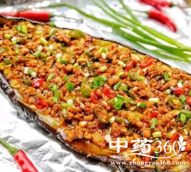 9.把炒好的泡椒肉末浇在煎烤好是茄子上即可。
