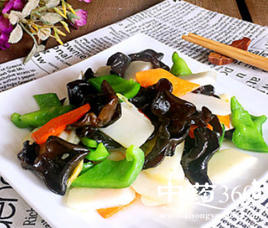 黑木耳被营养学家誉为‘素中之荤’和‘素中之王’,每100克黑木耳中含铁185毫克,它比绿叶蔬菜中含铁量最高的菠菜高出20倍,比动物性食品中含铁量最高的猪肝还高出约7倍,是各种荤素食品中含铁量最多的。黑木耳是一种味道鲜美、营养丰富的食用菌,含有丰富的蛋白质、铁、钙、维生素、粗纤维,其中蛋白质含量和肉类相当,铁比肉类高10倍,钙是肉类的20倍,维生素B_2是蔬菜的10倍以上,黑木耳还含有多种有益氨基酸和微量元素,被称之为 “素中之荤”。网购的小碗耳,今天用它和山药一起炒了,用最简单的盐调味!