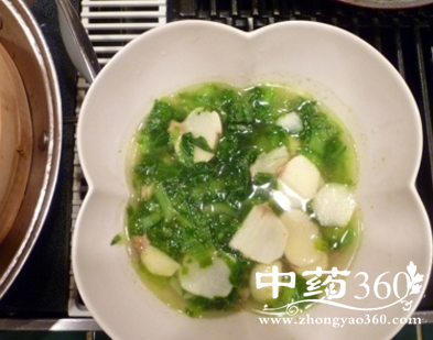 鸡胸脯肉:鸡胸肉蛋白质含量较高,且易被人体吸收入利用,有增强体力,强壮身体的作用,所含对人体生长发育有重要作用的磷脂类,是中国人膳食结构中脂肪和磷脂的重要来源之一。祖国医学认为,鸡胸肉有温中益气、补虚填精、健脾胃、活血脉、强筋骨的功效。对营养不良、畏寒怕冷、头晕心悸、乏力疲劳、月经不调、产后乳少、贫血、中虚食少、消渴、水肿、小便数频、遗精、耳聋耳鸣等虚弱等有很好的食疗作用。一般人群均可食用,老人,病人,体弱者更宜食用。慈菇:慈姑含有多种微量元素,具有一定的强心作用,同时慈姑所含的水分及其他有效成分,具有清肺散热、润肺止咳的作用。姑含有秋水仙碱等多种生物碱,有防癌抗癌肿、解毒消痈作用,常用来防治肿瘤。中医认为,慈姑主解百毒,能解毒消肿,利尿,用来治疗各种无名肿毒、毒蛇咬伤。金华火腿:火腿色泽鲜艳,红白分明,瘦肉香咸带甜,肥肉香而不腻,美味可口;火腿内含丰富的蛋白质和脂肪,多种维生素和矿物质;火腿制作经冬历夏,经过发酵分解,各种营养成分更易被人体所吸收。火腿性温,味甘、咸;具有健脾开胃,生津益血,滋肾填精之功效;可用以治疗虚劳怔忡、脾虚少食、久泻久痢、腰腿酸软等症。鸡蛋清:鸡蛋清富含蛋白质和人体必需的8种氨基酸和少量醋酸,可以增强皮肤的润滑作用,保护皮肤的微酸性,以防细菌感染;此外,鸡蛋清还具有清热解毒作用;我国中医还认为,鸡蛋清性微寒而气清,能易经补气,润肺利咽,清热解毒,有助于延缓衰老。