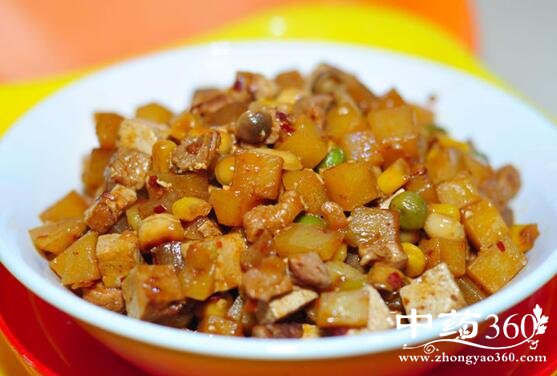 1.五香豆腐干、黄瓜分别洗净切幼条。