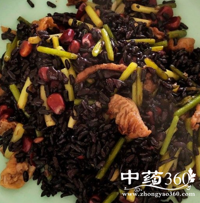 3放入黑米饭翻炒均匀。