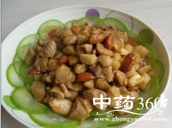 杏仁:杏仁含有丰富蛋白质、维生素及钙、镁、锌、硒等营养元素,还含有丰富的黄酮类和多酚类成分,这种成分不但能够降低人体内胆固醇的含量,还能显著降低心脏病和很多慢性病的发病危险。杏仁还有美容功效,能促进皮肤微循环,使皮肤红润光泽。豌豆苗:豌豆苗含钙质、B族维生素、维生素C和胡萝卜素,有利尿、止泻、消肿、止痛和助消化等作用。豌豆苗能治疗晒黑的肌肤,使肌肤清爽不油腻。豌豆苗含有胡萝卜素、抗坏血酸、核黄素等营养物质。蘑菇(鲜蘑):蘑菇的有效成分可增强T淋巴细胞功能,从而提高机体抵御各种疾病的免疫力;巴西某研究从蘑菇中提取到一种物质具有镇痛、镇静的功效,据说其镇痛效果可代替吗啡;蘑菇提取液用动物实验,发现其有明显的镇咳、稀化痰液的作用;蘑菇中含有人体难以消化的粗纤维、半粗纤维和木质素,可保持肠内水分平衡,还可吸收余下的胆固醇、糖分,将其排出体外,对预防便秘、肠癌、动脉硬化、糖尿病等都十分有利;蘑菇含有酪氨酸酶,对降低血压有明显效果。鸡蛋清:鸡蛋清富含蛋白质和人体必需的8种氨基酸和少量醋酸,可以增强皮肤的润滑作用,保护皮肤的微酸性,以防细菌感染;此外,鸡蛋清还具有清热解毒作用;我国中医还认为,鸡蛋清性微寒而气清,能易经补气,润肺利咽,清热解毒,有助于延缓衰老。