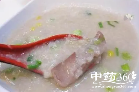将猪腰子去筋膜及腰筋,切成黄豆大的小丁,粳米用清水淘洗1次,葱切碎,一起同放锅内,加姜1片,花椒水和料酒各少许及清水,烧开后改中火煮至粥烂即可。