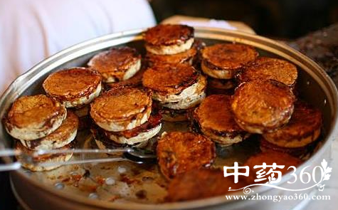 3、糕模刷上水油,放在炉上稍稍加热,将面浆从铜壶中浇入糕模孔,至模孔一半深时,即在各模孔中放入豆沙陷,再将面浆浇入模孔,盖住豆沙,至模孔注满后,上面再放上糖板油丁,红绿瓜丝,烘烤七八分钟后,将模孔中的糕用铜钎挑出,放于另一撒上一层白糖的铁板上,糕面贴铁板,底面朝上,再放在炉上烘烤,待铁板上溢出糖浆,色呈酱红色时,把糕身取出装盘即可.