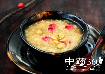 4.放入泡过的糯米,煮到黏稠,中间要不时的搅拌,避免粘锅,出锅前放入蜂蜜即可食用