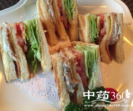 金枪鱼三明治的功效与作用1金枪鱼具有美容减肥、保护肝脏、防止动脉硬化、降低胆固醇、健脑益智、预防缺铁性贫血、促进生长发育的功效。2吐司富含蛋白质、脂肪、碳水化合物及钙、钾、镁、锌等矿物质,易于消化、吸收,食用方便。3圣女果具有生津止渴、健胃消食、清热解毒、凉血平肝,补血养血和增进食欲的功效。4莴笋叶具有补血养血、调理肠胃、消暑解暑、开胃消食、消除水肿、提高代谢、燃烧脂肪的功效。5金枪鱼三明治此菜具有开胃消食、补充营养、利尿消炎、防治结石、补血养血、镇静安神的功效。