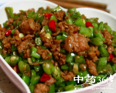 豆角成熟之后 加入之前超好的肉沫 加适量的盐 翻炒均匀
