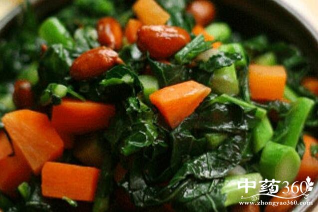 胡萝卜0.5根(改用黄瓜味道也很不错,或者莴笋);花生35克;芥蓝(也可以换成菠菜等其他绿叶蔬菜)150克;蒜5克;葱10克;盐3克;糖1克;醋5克;生抽适量;