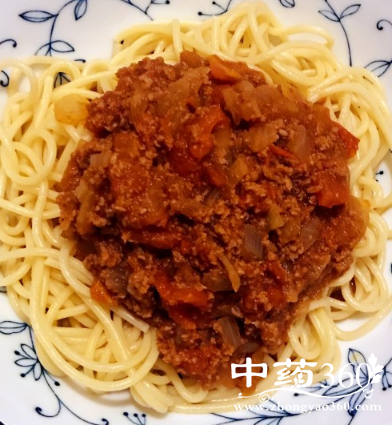 13浇入番茄牛肉酱拌匀就可以享用啦。