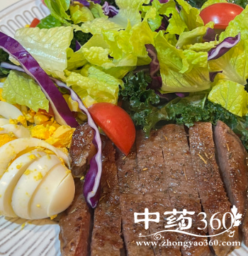 9将白煮蛋和牛排摆盘,最后淋上自己喜欢的沙拉酱即可。