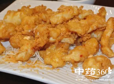 主料鱿鱼:3尾;葱:2根;蒜仁:30公克;辣椒:1根;玉米粉:1/2杯;吉士粉:1/2杯;蒜末:20公克;盐:1/4茶匙;细糖:1/4茶匙;蛋黄:1个;盐:1/4茶匙;鸡精粉:1/4茶匙