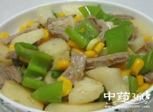 白薯,甜玉米,猪肉,辣椒。盐,油,味精,生抽。