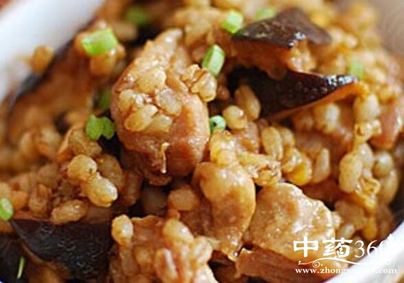 4】把香菇,泡好的麦仁,腌好的鸡肉拌匀;锅内烧开水,放拌匀的材料大火蒸1小时即可!