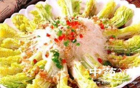 4、泡软的粉丝铺在盘底,摆放娃娃菜