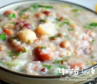 大米,糯米,莲子,薏米,杏仁,黑木耳,枸杞,干扇贝,干莲子,胡萝卜,黄豆,生姜。