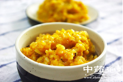 加入足够米饭和南瓜的食盐,这个饭比较清淡,可以适量的少放些盐。