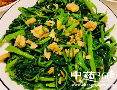 3.加入空心菜大火拌炒均匀,在加一大匙水煨煮一下下。