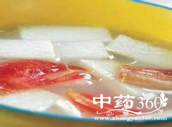 冬瓜:冬瓜含有多种维生素和人体必需的微量元素,可调节人体的代谢平衡。冬瓜性寒,能养胃生津、清降胃火,使人食量减少,促使体内淀汾、糖转化为热能,而不变成脂肪。因此,冬瓜是肥胖者的理想蔬菜。同时冬瓜有抗衰老的作用,久食可保持皮肤洁白如玉,润泽光滑,并可保持形体健美。此外冬瓜还有良好的清热解暑功效。夏季多吃些冬瓜,不但解渴消暑、利尿、还可使人免生疔疮。因其利尿,且含钠极少,所以是慢性肾盐水肿、营养不良性水肿、孕妇水肿的消肿佳品。火腿:火腿色泽鲜艳,红白分明,瘦肉香咸带甜,肥肉香而不腻,美味可口,各种营养成分易被人体所吸收,具有养胃生津、益肾壮阳、固骨髓、健足力、愈创口等作用。
