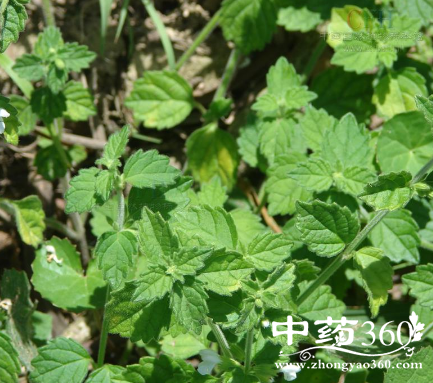 【性状】性状鉴别,茎呈方柱形,有分枝,长约50cm,有绒毛状长柔毛。叶对生,多皱缩或破碎,完整叶片展开后呈卵形,长1.5-4cm,边缘具锯齿,两面密被短绒毛。轮伞花序,有苞片较少,条形;花萼筒状,外表面密被柔毛,花冠筒状唇形,多干缩。小坚果卵状三棱形。气微,味淡。