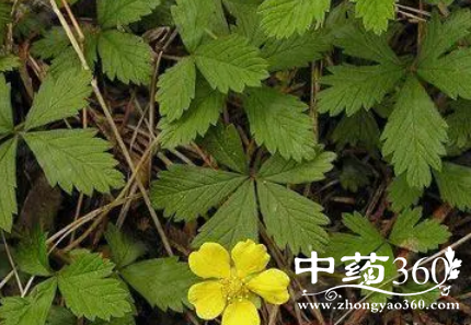 多年生草本。茎匍匐,节上生根,被柔毛。基生叶为三出或掌状复叶;小叶倒卵形,长1-3厘米,宽0.8-1.2厘米,边缘有钝锯齿,近基部1/3全缘,上面有柔毛,下面被绢毛;叶柄细长,有柔毛;托叶膜质;茎生叶与基生叶相似;托叶小,披针形。花单生,花梗细长,长24厘米;花黄色;萼开展,5裂;花瓣5,宽广,较萼片长;雄蕊多数;心皮多数。瘦果褐色,有小突起。