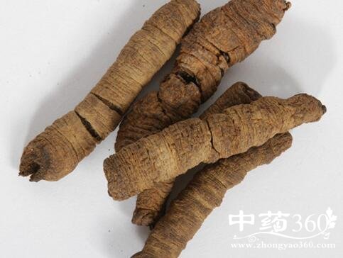 4、制巴戟天 取甘草,捣碎,加水煎汤,去渣,加入净巴戟天拌匀,照煮法(附录ⅡD)煮透,趁热除去木心,切段,干燥。