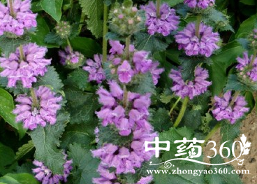 【原形态】多年生草本,高50-150cm。根较长,红褐色,较肥大,常数个集生。茎直立,四棱形,疏被向下的短硬毛。叶对生,叶柄长1-12cm,密被短硬毛;叶片圆卵形或卵状长圆形,长5.2-12cm,宽2.5-12cm,先端急尖,基部浅心形或圆形,边缘具粗锯齿,两面被疏柔毛及星状柔毛。轮伞花序通常4-8花,多数;苞片线状钻形,较坚硬,常呈紫红色,被星状毛;花萼管状,长约10cm,外面被星状毛,萼齿5,先端具小刺尖,边缘被丛毛;花冠通常粉红色,长约1.7cm,唇形,外面背部上方被短柔毛;边缘具不整齐的小齿,下唇外面密被绢状柔毛,3裂,裂片卵形或近圆形,中裂片较大;雄蕊4,前对较长,后对基部无附属物,花丝无毛,花药2室;雌蕊子房2,合生,花柱单一,柱头2裂。小坚果卵状三棱形,先端无毛。花期6-9月,果期7-10月。