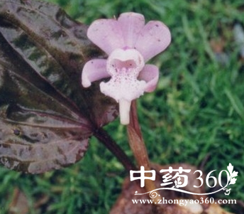 【原形态】独花兰,陆生植物,高10-18cm。假鳞茎宽卵形,具2-3节,直径约1cm,肉质。顶生1枚叶;叶柄长5.5-9.5cm;叶片近圆形或宽椭圆形,长6.5-11cm,宽5-8cm,先端急尖或渐尖,基部圆形,全缘,背面紫红色,具9-11条脉。花葶从假鳞茎先端长出,直立,顶生1朵花;花苞片小,早落;花淡紫色,直径4-5cm;萼片长圆状披针形,长3.2cm,宽8mm,先端钝,具腺体;花瓣较宽,斜倒卵状披针形,长2.8cm,宽1.2cm,先端钝,具腺体;唇瓣生于蕊柱基部,椭圆形,长2.5cm,基部圆形,3裂,中裂片斜出,近肾形,边缘具皱波状圆齿,具爪,唇盘上具5枚附属物,侧裂片直立,斜卵状三角形;距粗大,角状,稍弯曲;蕊柱长,具阔翅,无蕊柱足;子房长7-8mm。花期4月。