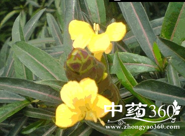 【原形态】花叶假杜鹃 灌木,高约2m。茎直立,多分枝。叶对一;有短柄;吉片披针形,长4-8cm,先端渐尖,基部楔形,两面均被白色柔毛;在叶柄基部有一对向下的针刺,紫红色。穗状花序顶生或腋生;具多数大苞片;萼片4,成对,外面一对较大;花黄色,花冠管状,5裂,裂片近相等;发育雄蕊2-3,退化雄蕊1-2;子房上位,2室,花柱长。蒴果卵形,中部以下有种子4颗。花期5-7月。